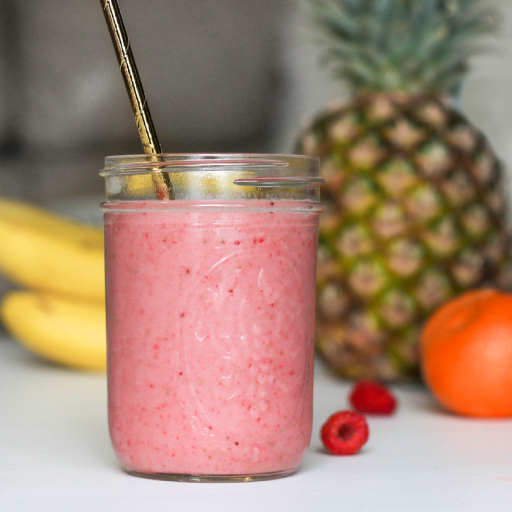 This refreshing and visually stunning beverage combines a medley of delicious fruits to create a delightful burst of flavor. It’s packed with nutrients and antioxidants to give you a healthy boost. Enjoy the invigorating taste of raspberries, banana, and orange blended together for a delightful and nourishing drink.